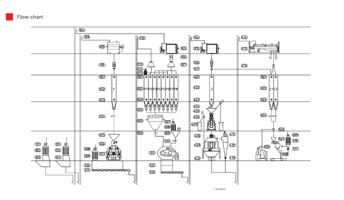 | Process flow | 1.Bucket elevator -2.Buffer bin -3.Hammer mill -4.Bucket elevator -5.Buffer bin-6.Mixer -7.Bucket elevator -8.Broken arch bin -9.Wet way feed pellet extruder-10.Air conveyor -11.Dryer -12.Air conveyor -13.Seasoning machine -14.Air conveyor-15.Cooler -16.Air conveyor -17.Finished product silo |